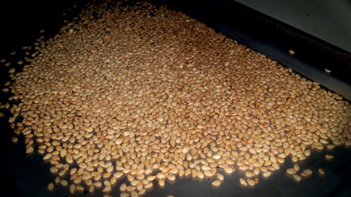 Above: pre-toasted seeds. Below: post-toastation.